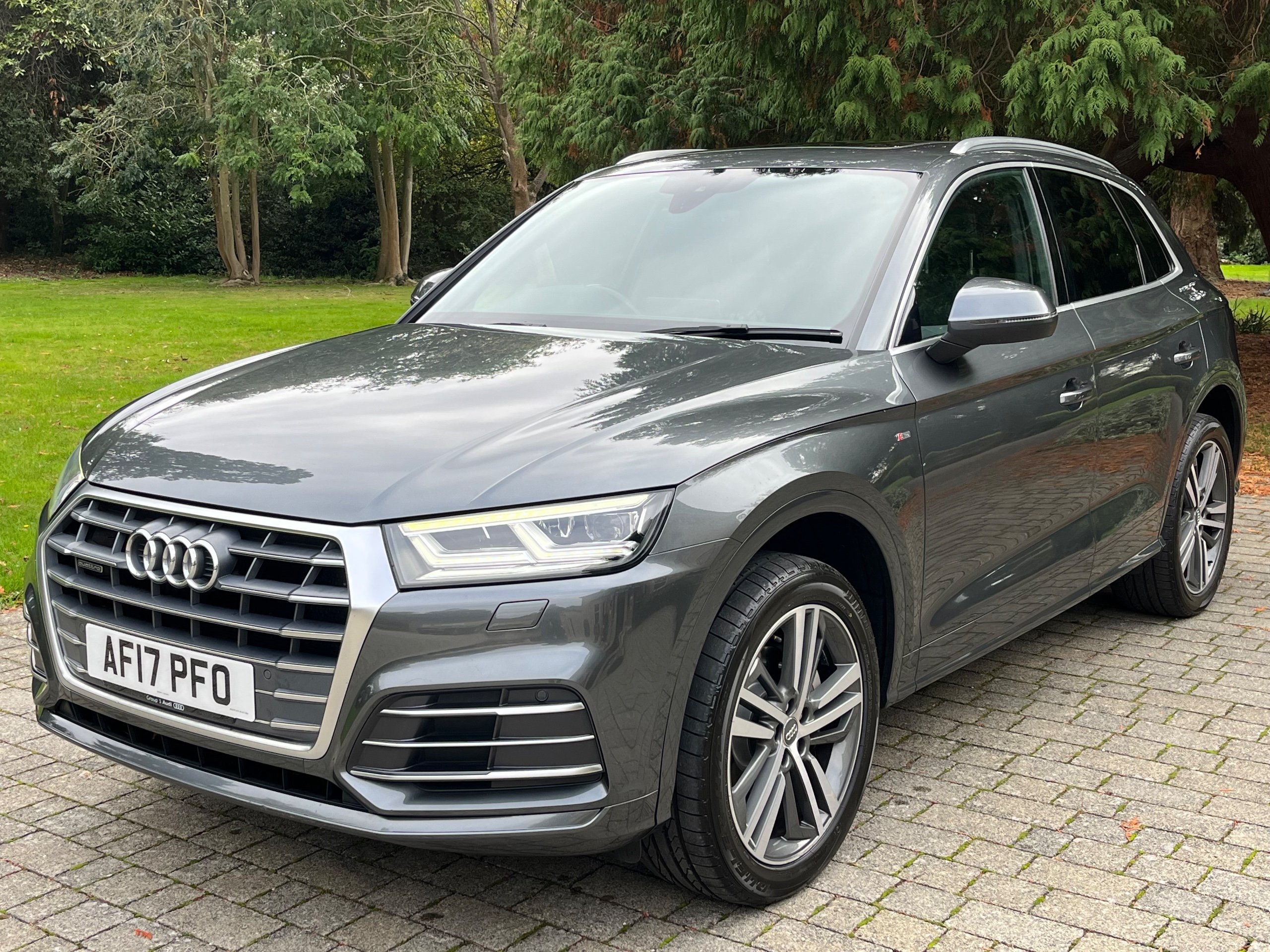 For sale is this really fantastic BIG SPECIFICATION including Panoramic Roof, B&O, Virtual Cockpit, Cross Stitched Fine Napa leather, LED lighting, 20 inch dual colour Alloy wheels with Matching Bridgestone Dueller tyres brand new on the front 7mm on the back, Power Tailgate and much more. The Extras were over Seven thousand pounds when it was new . This 2017 Audi Q5 TDI QUATTRO S LINE 5-Door Estate in excellent condition with only 91000 miles on the clock. It has just been serviced and has Brand new front discs and pads and will come with a full MOT. This diesel vehicle is ULEZ compliant and comes with 5 seats and 5 doors, making it a practical and spacious choice for families or those who need extra cargo space. With just 1 previous registered keeper(s), it is clear that this car has been well looked after. An ideal combination of performance, efficiency, and luxury, the Audi Q5 is a stylish and reliable vehicle that offers a smooth driving experience. Don't miss out on this fantastic opportunity to own a high-quality car at a competitive price. If you are interested in this really special spec car with full service history call or email Mark to make an appointment to view it. Please make sure that you do as I am often delivering cars and no longer have my cars on show. If you do want more pictures of this lovely big spec car please let me know. Thanks for looking